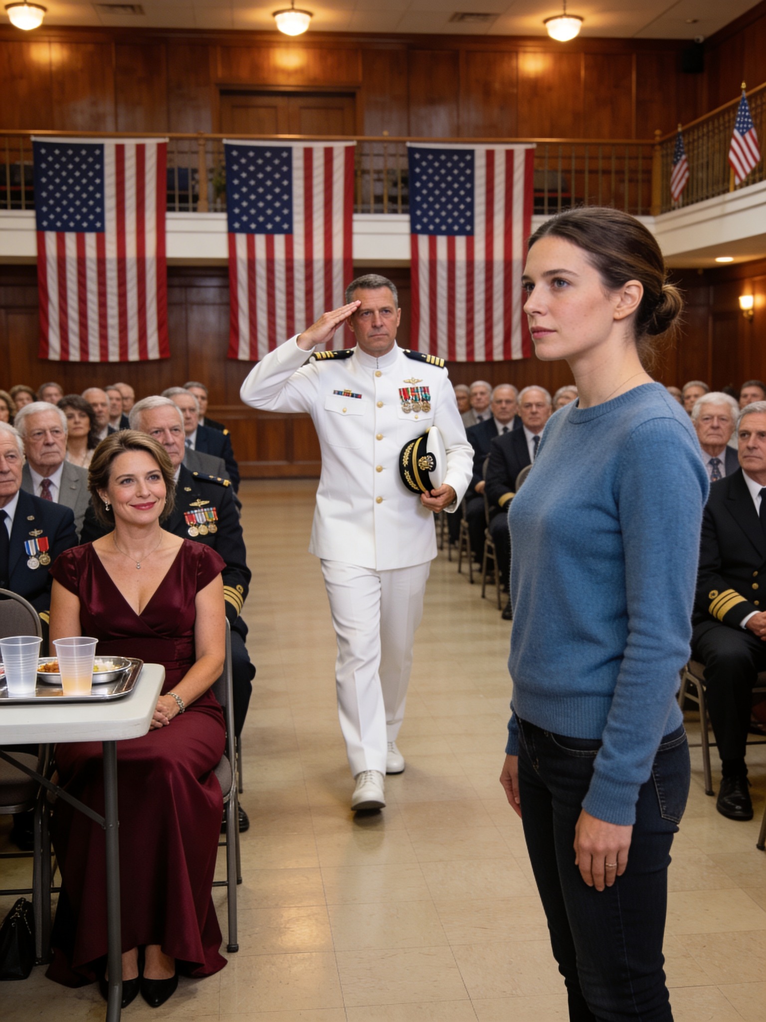 The tray shakes in Valerie’s hands so hard the roasted chicken rattles against the silver platter. Your mother steps into the doorway behind her, still