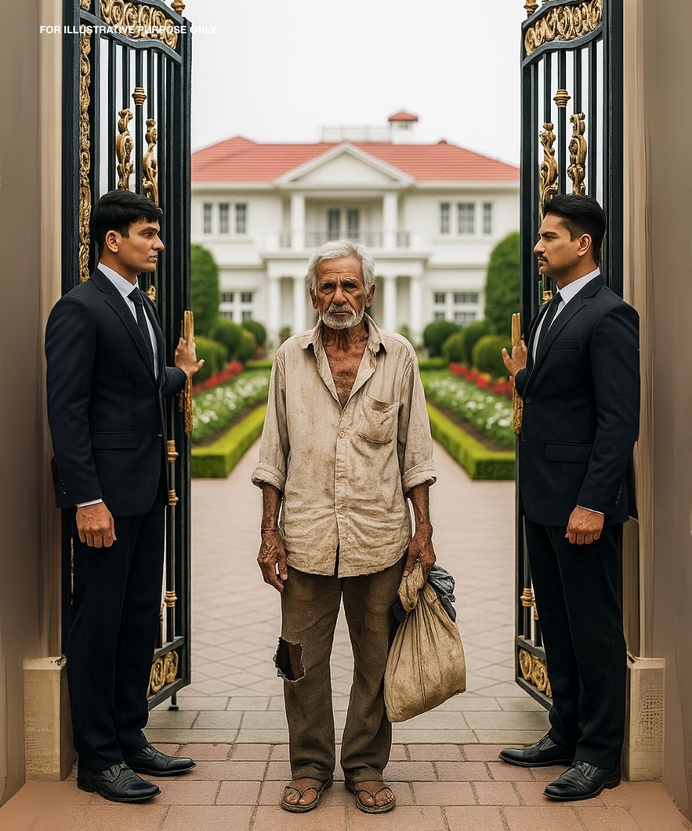 On a sweltering summer morning, a man in construction worker clothes and covered in cement dust came up before a beautiful mansion in New Delhi’s