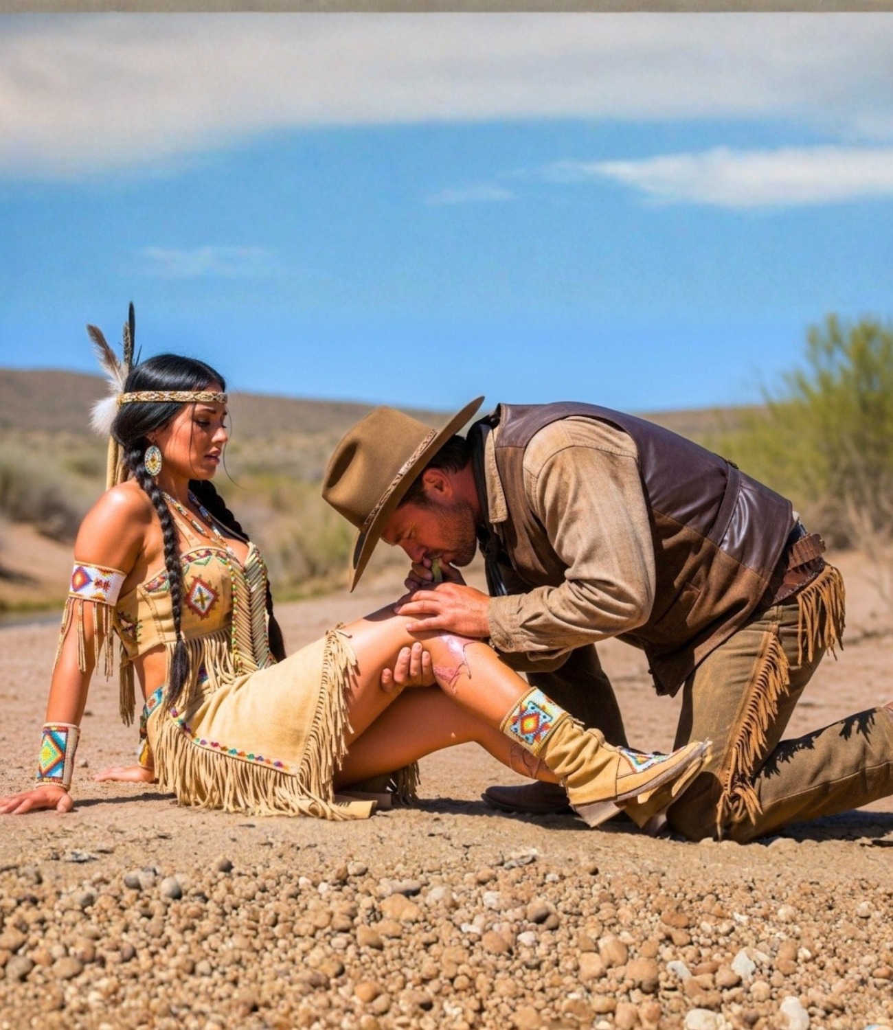 Dai, an Apache lady, whispers the name of the man who buried her alive while ants cover her body. From then on, the desert is