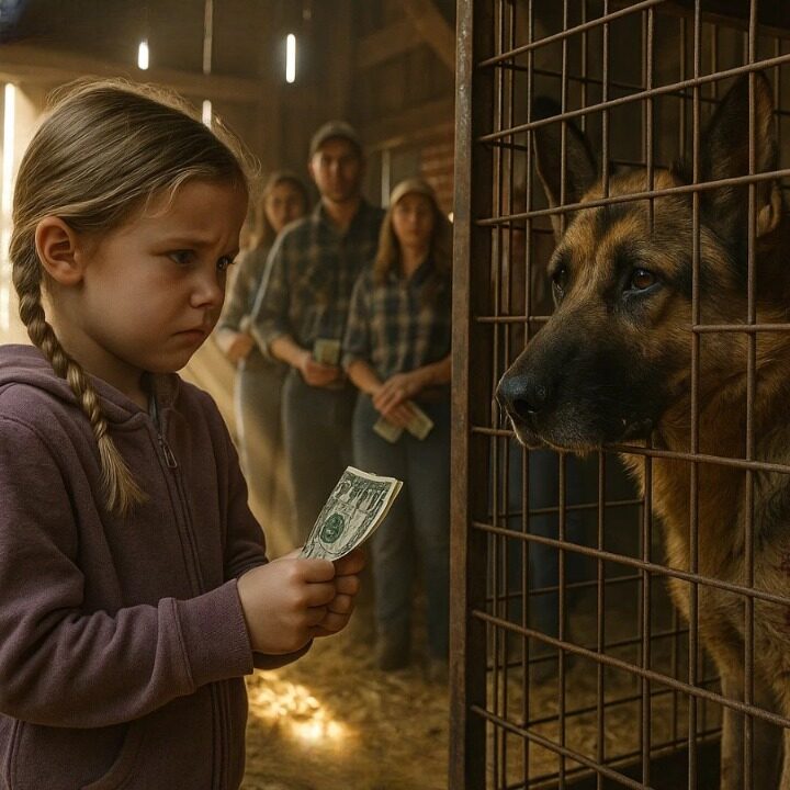 There was a lot of noise in the barn, including barking, shouting, and laughing. But in a lonely corner, a German Shepherd with scars sat