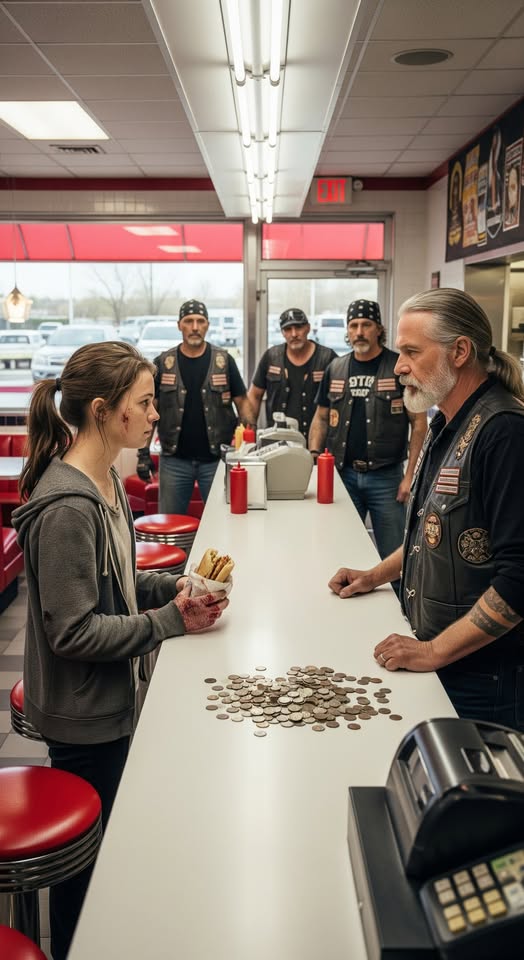 Blood hit the bakery counter before anyone noticed the girl. It fell in slow, uneven drops, dark against the pale wood, pooling beside a stack