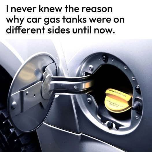 Please tell me why the entrance to your gas tank is on the “wrong” side.Have you ever had to walk around a gas station in