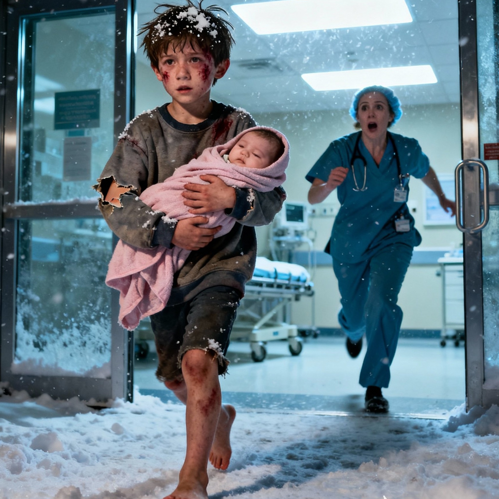Ethan Walker, a seven-year-old boy with bruises, walked into the emergency room of St. Mary’s Hospital in Indiana just after midnight. He was holding his