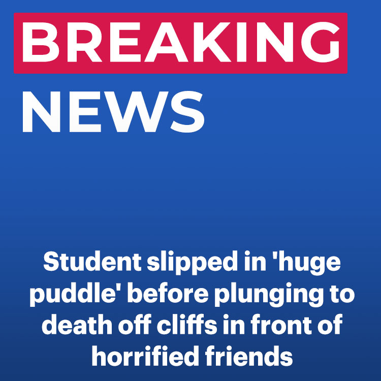 An inquest has heard that a British college student fell to her death in front of her classmates after slipping in a huge puddle on
