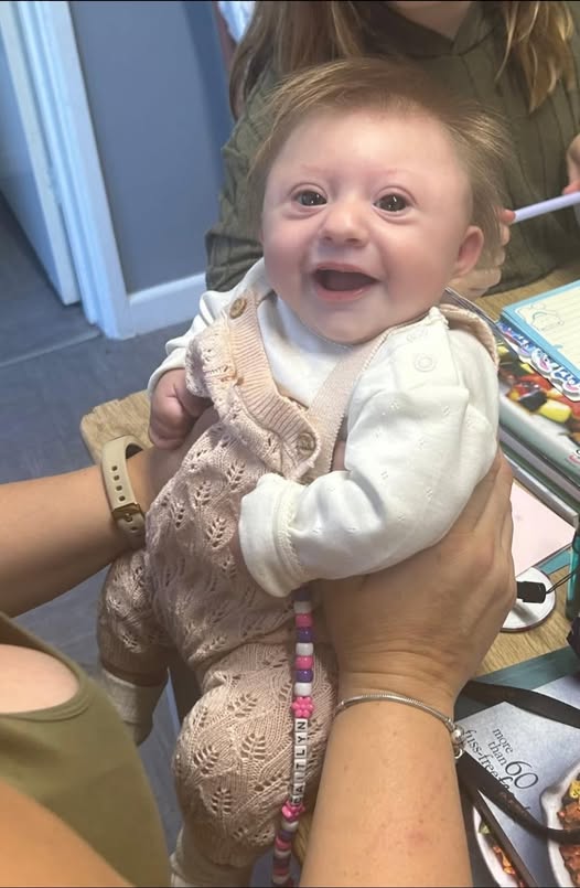 Just as Kate was putting breakfast on the table, the doorbell rang. Josh was outside strolling his daughter Emily around the garden, so she picked