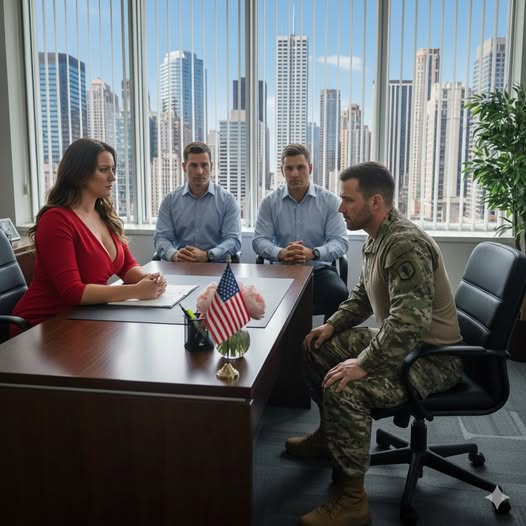 Daniel Brooks adjusted the cuffs of his borrowed suit as he stood outside the glass-walled conference room on the forty-second floor. The fabric didn’t quite fit his broad shoulders, but it was the only formal thing he owned. Three months ago, he’d still been wearing combat boots and desert camo. Now, he was here—resume in hand, heart steady, mind alert.