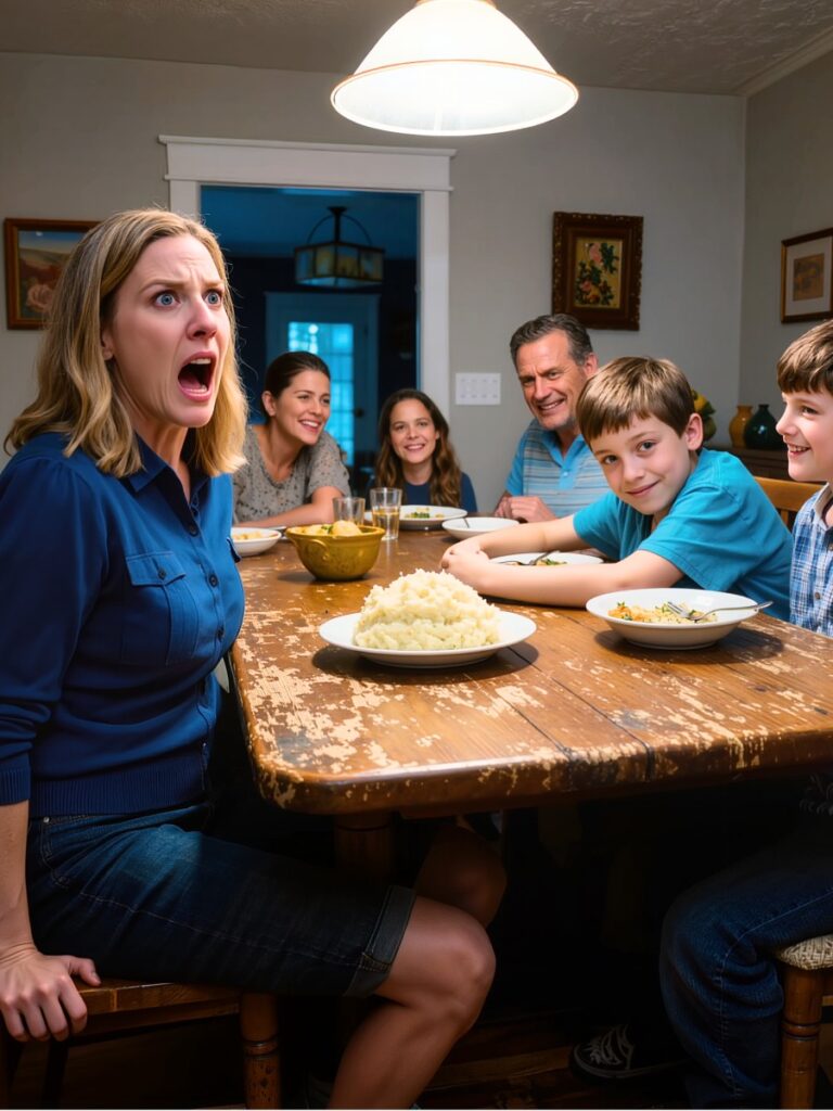Jenna laughed again, louder, as if my restraint was funnier than my rage. Caleb mimicked her, the same pitch, the same rhythm, like a little echo. Alex kept chewing. My mother’s knife continued to saw calmly through meatloaf.