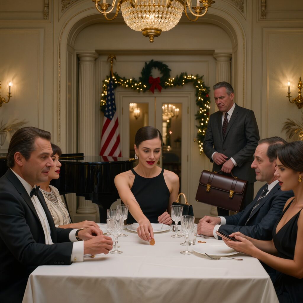 The hostess pulled out my chair. I sat. A waiter appeared almost instantly to refresh my wine. Another adjusted a side plate I had not touched. A third seemed to materialize from nowhere to explain the chef’s holiday tasting menu in a voice so smooth it nearly softened the ridiculousness of the people I was sharing it with.