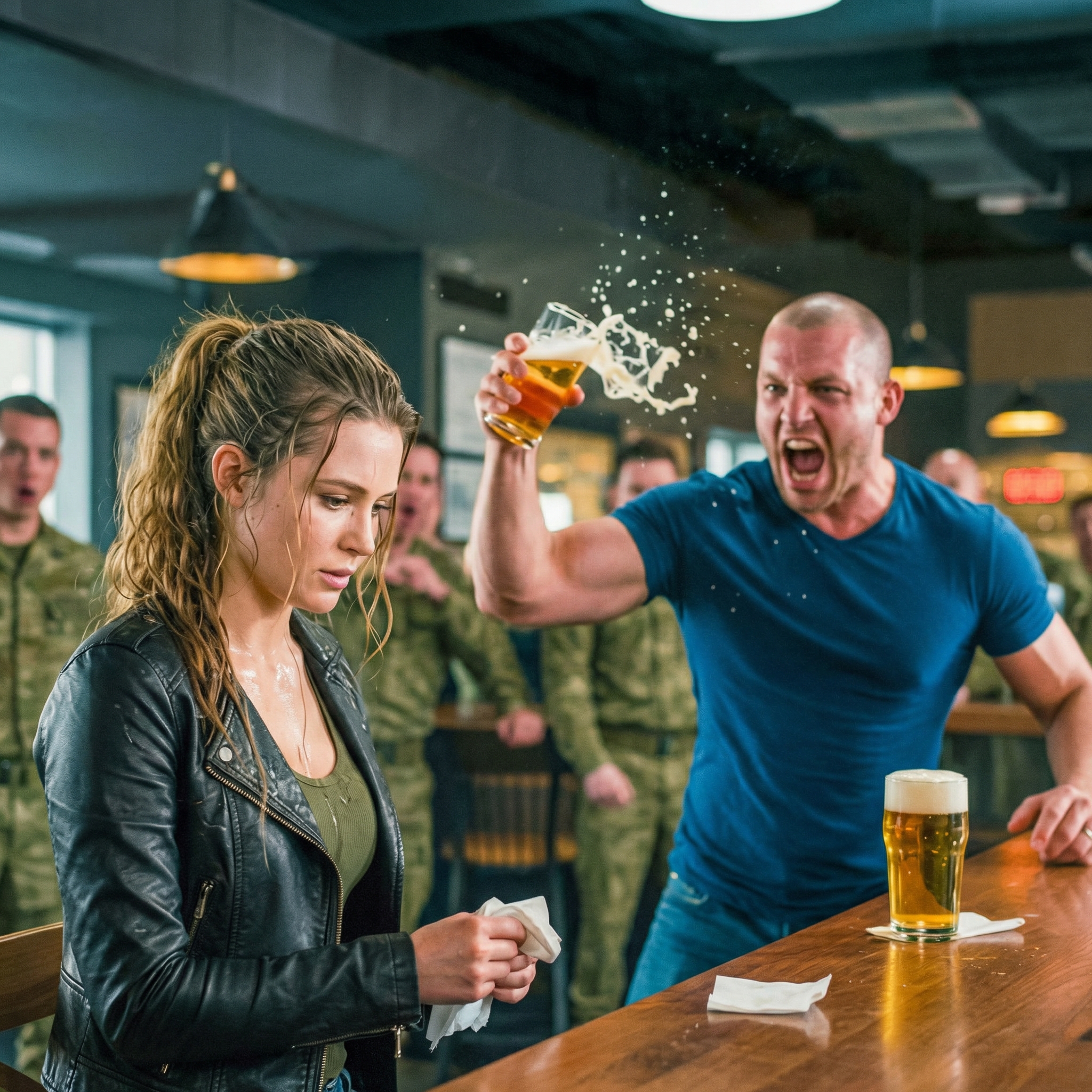 Morgan’s gaze drifted casually toward the door. Two men, neither drunk, neither friendly. Clean haircuts. Civilian clothes that screamed “trying not to look tactical.” One scanned the room like he was counting exits. The other stared at Morgan like he’d found something he’d been paid to find.