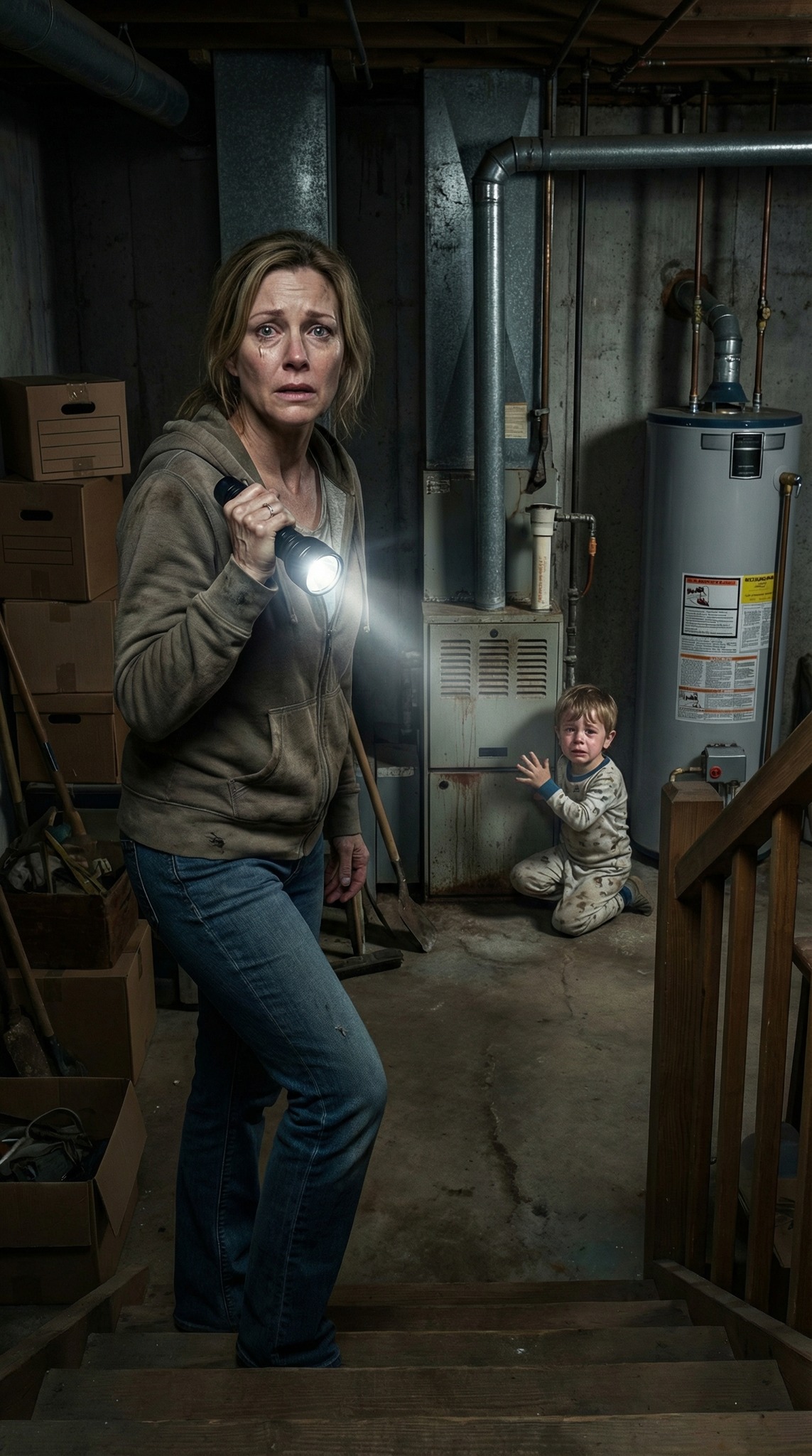 From the far corner near the furnace, a small voice carried up through the dark, raw with fear and exhaustion: