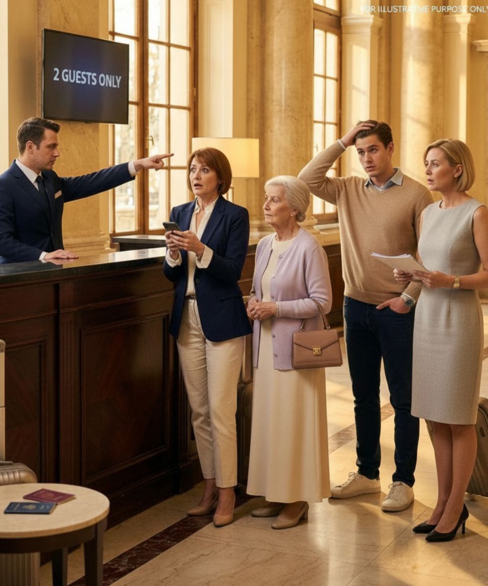 The receptionist repeated, uncomfortably, “Only two guests are authorized. I can help you book another room, but it’s not part of this reservation.”
