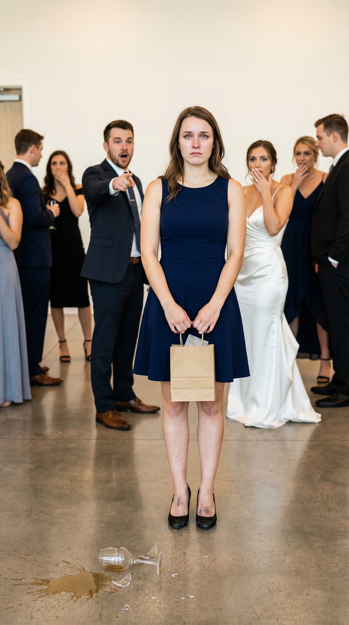 I walked into the engagement party in a borrowed navy dress, the hem a little uneven because I’d stitched it myself that morning. The banquet