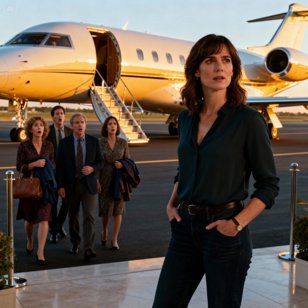 A private jet was taxiing slowly into view—sleek, white, understated, with no flashy branding. Just clean lines and quiet authority.