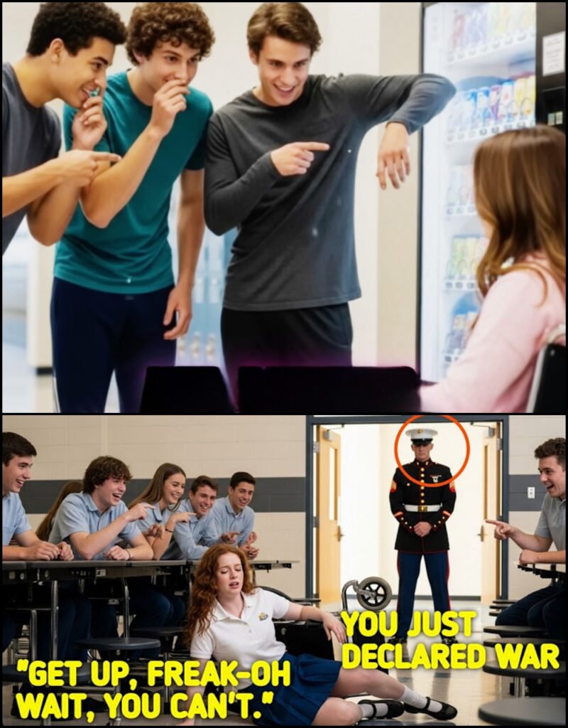 Her damaged wheelchair was all around her in the cafeteria, and her friends were laughing and recording her on their phones. Then the doors to the cafeteria opened. There was a tall, scarred, and angry man in a marine uniform standing there.