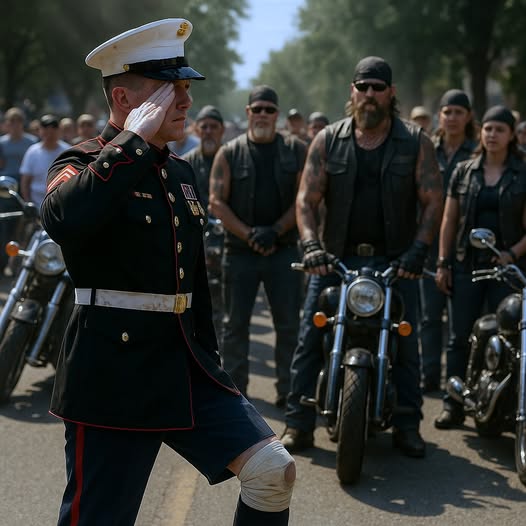An injured Marine stood alone in the middle of a crowded roadway for three hours on Memorial Day weekend, which is also known as Rolling