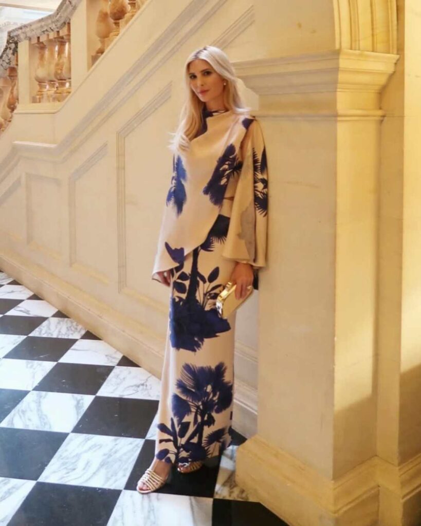 For those who have been following Ivanka’s fashion journey over the years, her presentation was a continuation of her work with Johanna Ortiz, a designer known for making clothes that are both feminine and strong. Ivanka wore a floral Ortiz dress that cost $1,250 to a campaign event in Arizona in 2020. People also enjoyed how that ensemble combined current and classic elements, which is something Ivanka often does with her clothes.