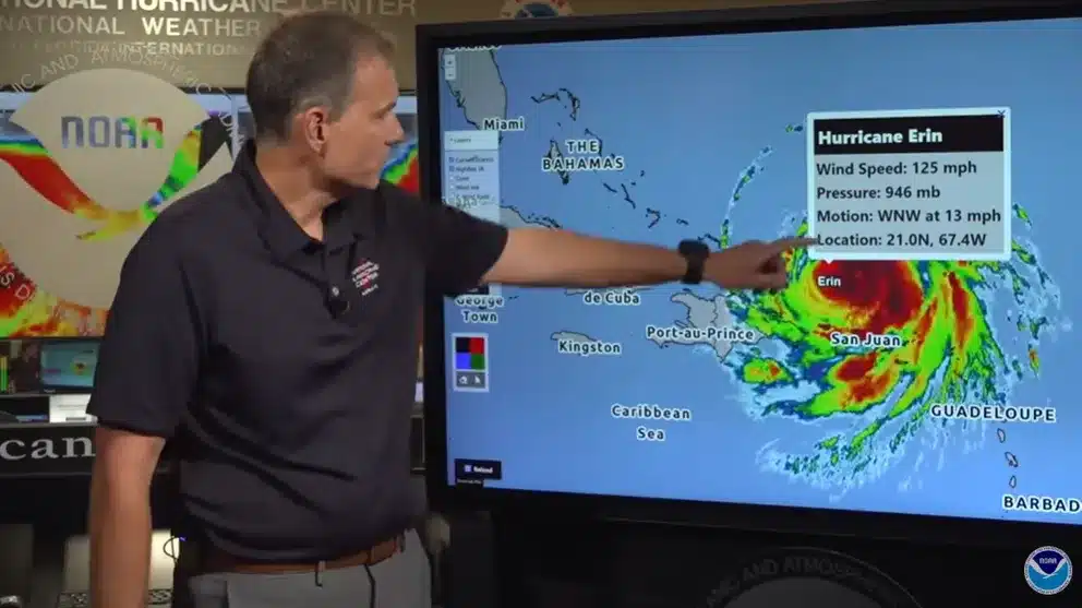 On Saturday, August 16, 2025, Storm Erin reached Category 5. But it is still strong in the Atlantic Ocean. It is now a Category 3 hurricane.