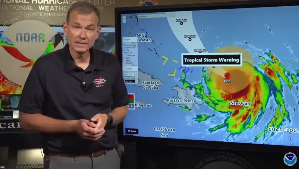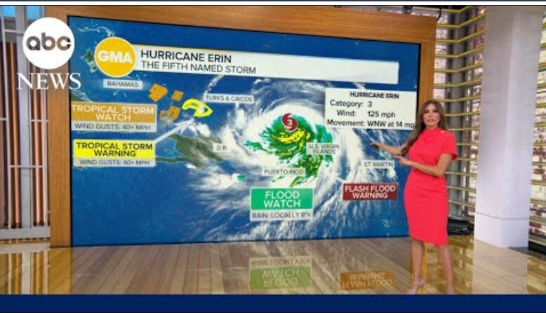 Erin’s big wind field is causing rain and flooding in a lot of places. The NHC also says that the waves are rough in the Virgin Islands, Puerto Rico, Hispaniola, and the Turks and Caicos. The Bahamas, Bermuda, the East Coast of the US, and Atlantic Canada will all be hit in the next few days.