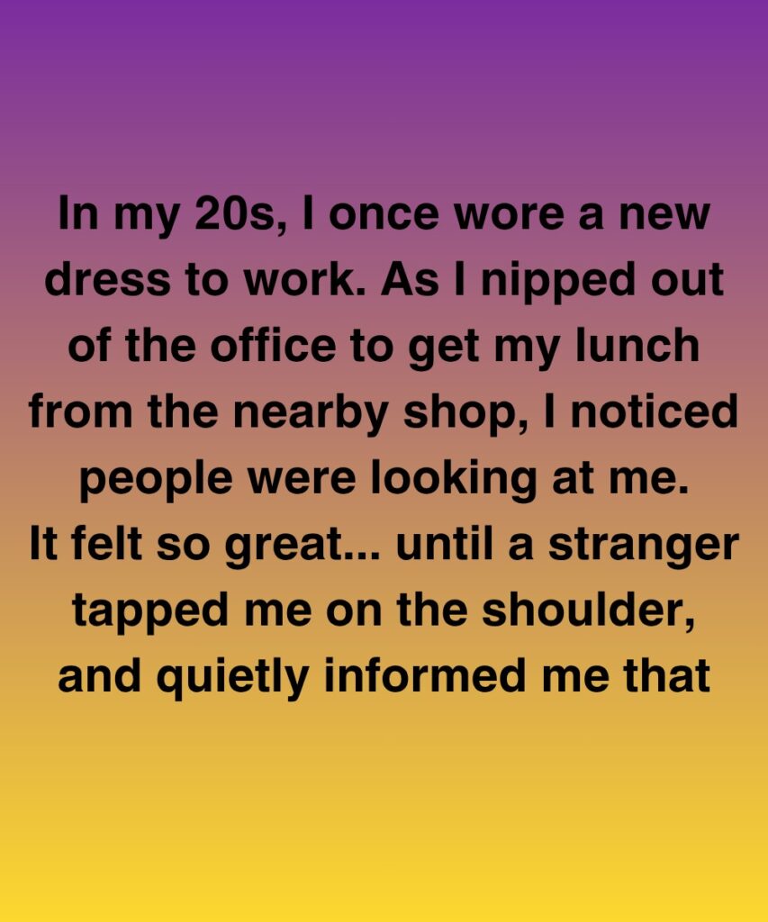 In my 20s, I wore a new dress to work once. When I went out of the office to get lunch from the store next door, I saw people looking at me. It was a great time until a stranger touched my shoulder and quietly told me that the tag was still on the back of my garment. My cheeks got burning right away. I lost the confidence I had been bringing with me.
