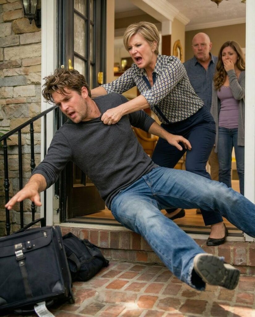 She stormed toward me, grabbed my arm, and shoved me toward the staircase leading to the front door.