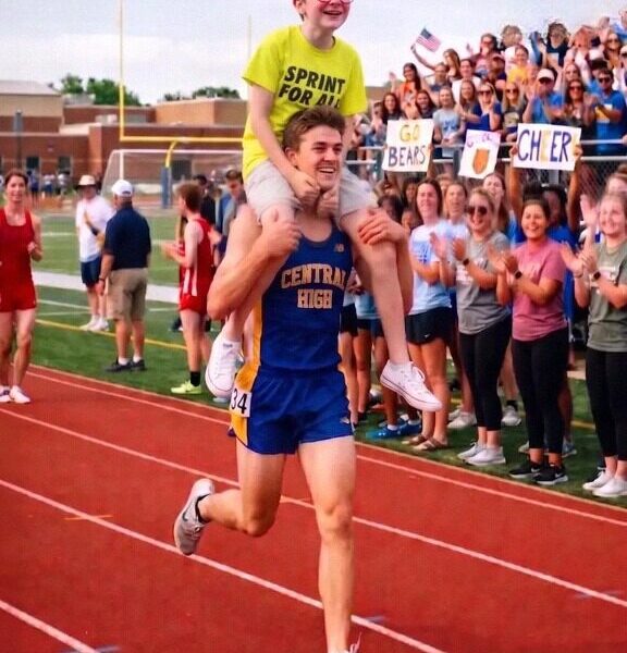 in front of his sister.