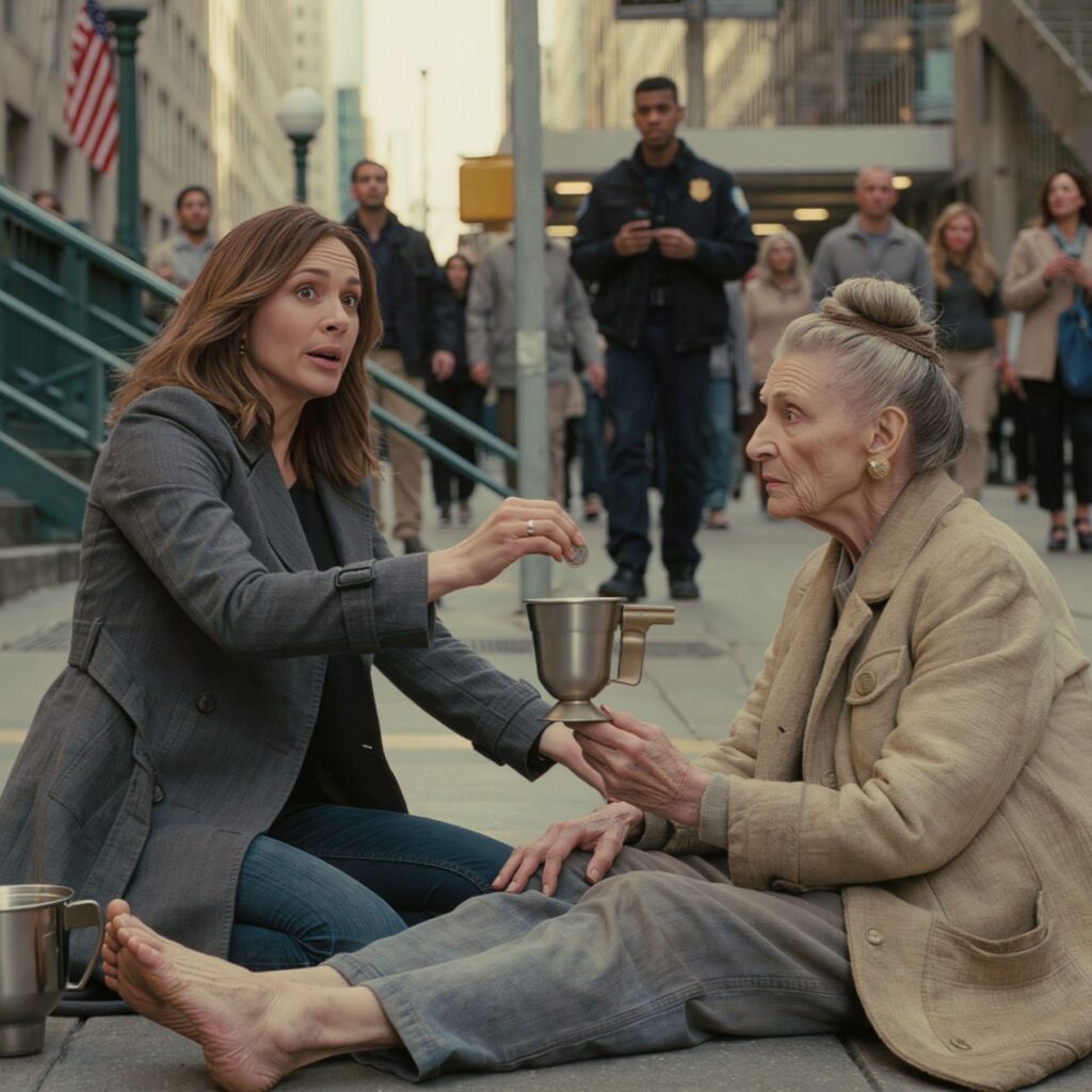 This Monday morning, Simone paused again by the old woman. The change in her jeans pocket jingled—about three dollars in coins. She leaned down, reached toward the cup, and suddenly felt her wrist seized by dry but surprisingly strong fingers.