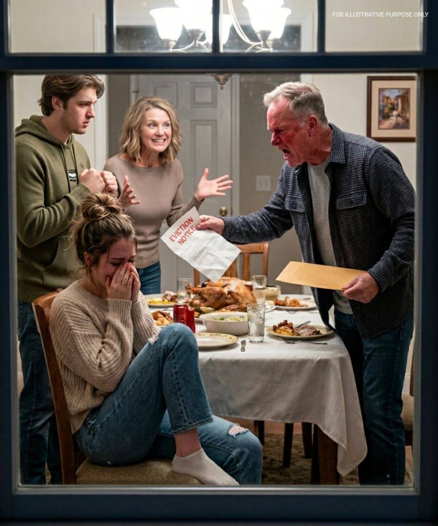 I looked around the table—the candles, the half-carved turkey, the fake eviction notice—and felt something settle inside me.