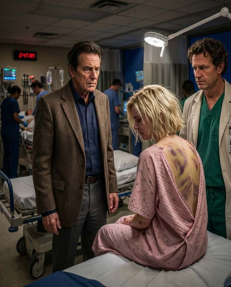 My daughter lay face down on the bed, sedated, her blond hair damp with sweat, her fingers twitching faintly against the sheet. The back of her hospital gown had been cut open. At first, I thought the dark streaks across her skin were bruises.