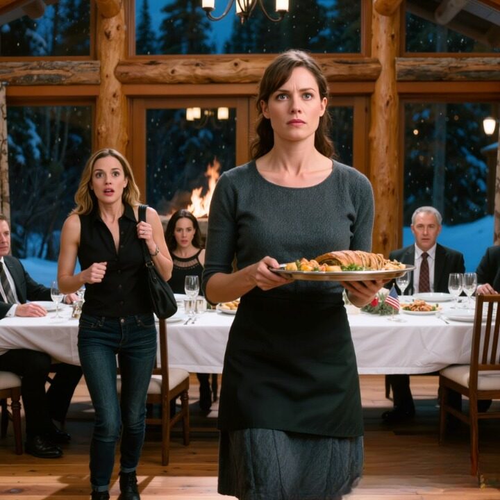 The chalet smelled like rosemary, seared meat, candle wax, expensive perfume, and wood smoke. Holiday music played softly from hidden speakers, so tasteful it was almost oppressive. My father’s friends milled around the living room with drinks in hand—men in tailored sweaters, women in silk blouses and winter whites, all of them carrying the glossy ease of people accustomed to being treated well. A few turned toward me politely, smiling the kind of smiles people offer household staff when they don’t want to seem rude in front of other guests.