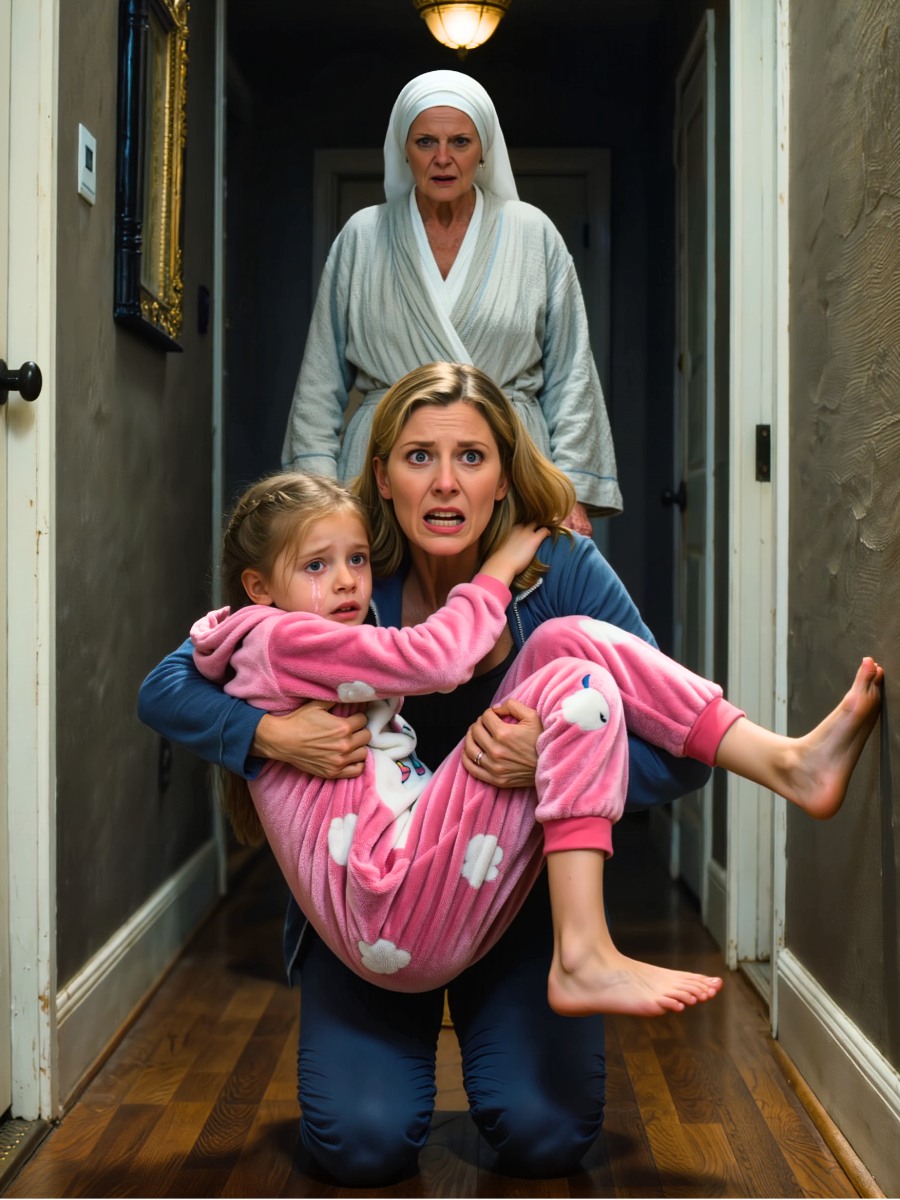 The hall was barely lit by the small nightlight we kept plugged in near the bathroom. In that dim yellow pool of light, I saw Eva’s small figure at the far end, in her pink pajamas with the faded unicorn on the chest. Her hair was tangled and sticking up in corners. She was crying so hard her shoulders were shaking.