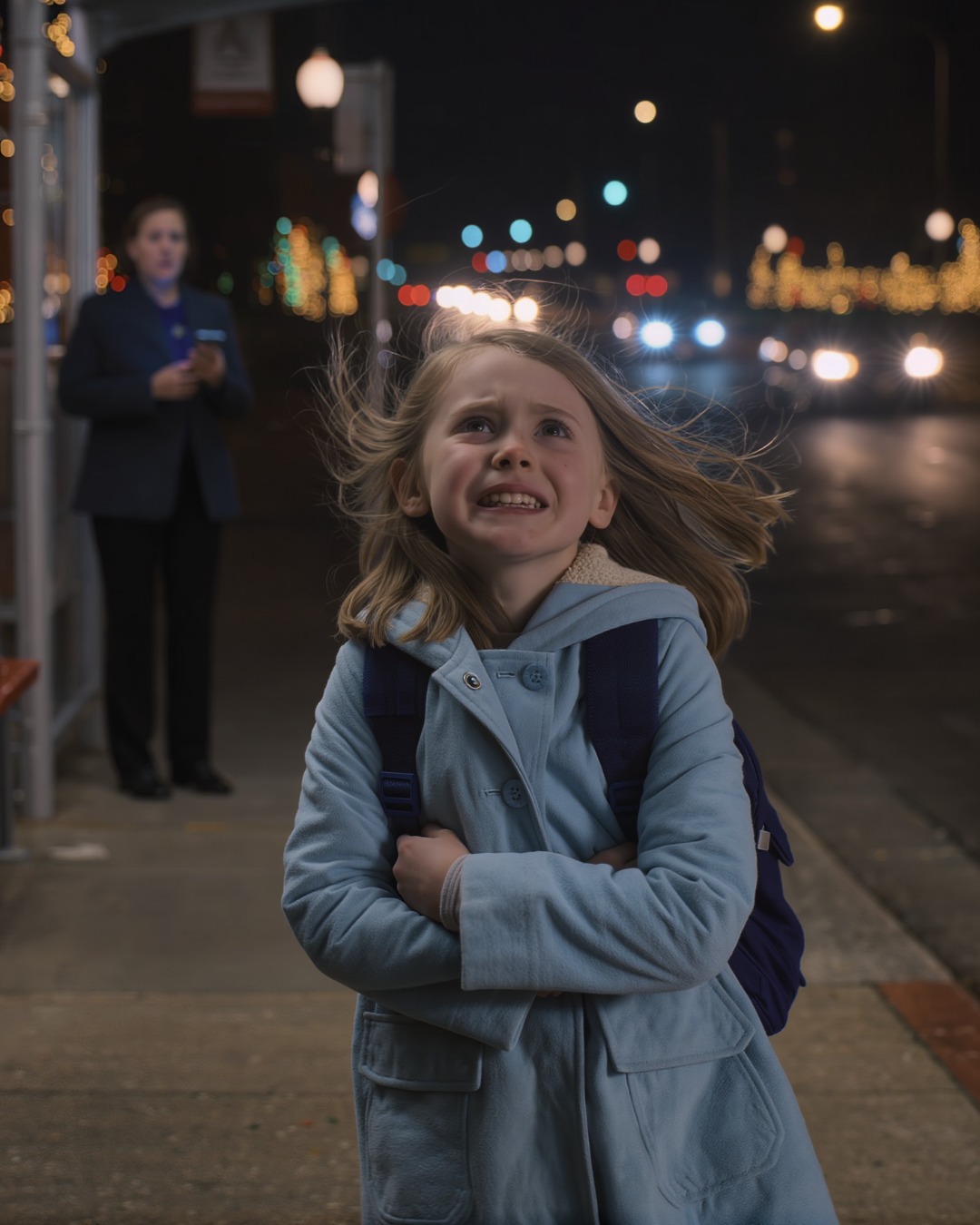 “I thought maybe you were coming,” she said, looking up at me. A tiny, hopeful smile flickered and then vanished. “But Mom drove away. I sat on the bench like she said. I waited. And waited. It got really dark. The wind made my face hurt. I didn’t know what time it was. I thought maybe I did something really bad this time.”