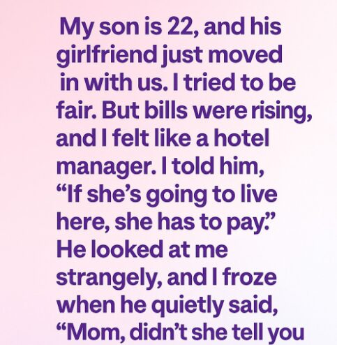 I took a breath and tried to choose my words carefully, but they came out harder than I imagined they would. “Your girlfriend has been living here for three months now.” I want to help your relationship, but I also need to be honest about how much it costs to keep a home running.
