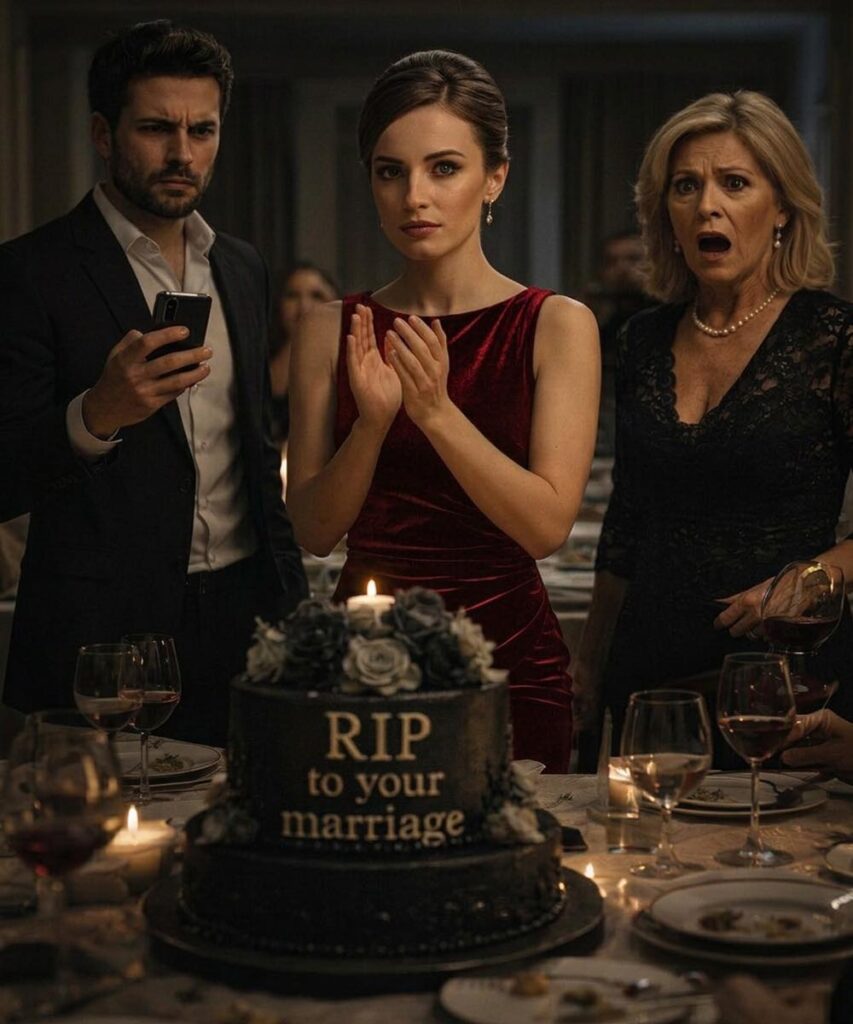 When they opened the box, I saw a black cake with gray cream flowers and a sentence written in white letters: “RIP to your marriage.” Nervous laughter filled the room. My sister-in-law covered her mouth. Two of Carmen’s friends clapped as if it were clever. I stayed still, staring at the cake, feeling the blood rush to my face.
