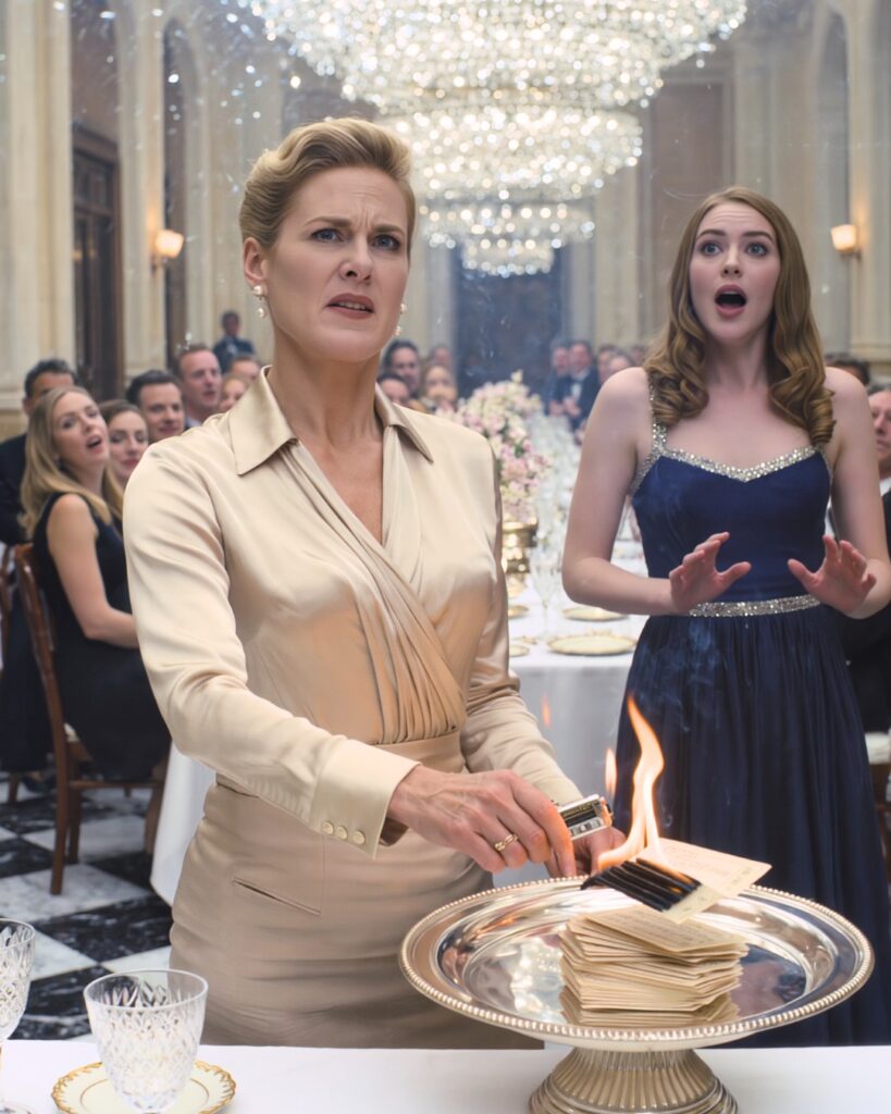 She rose from her chair with a grace that made people instinctively quiet. Tapped her champagne flute with the side of her fork. The ring of crystal on silver cut through the murmurs.