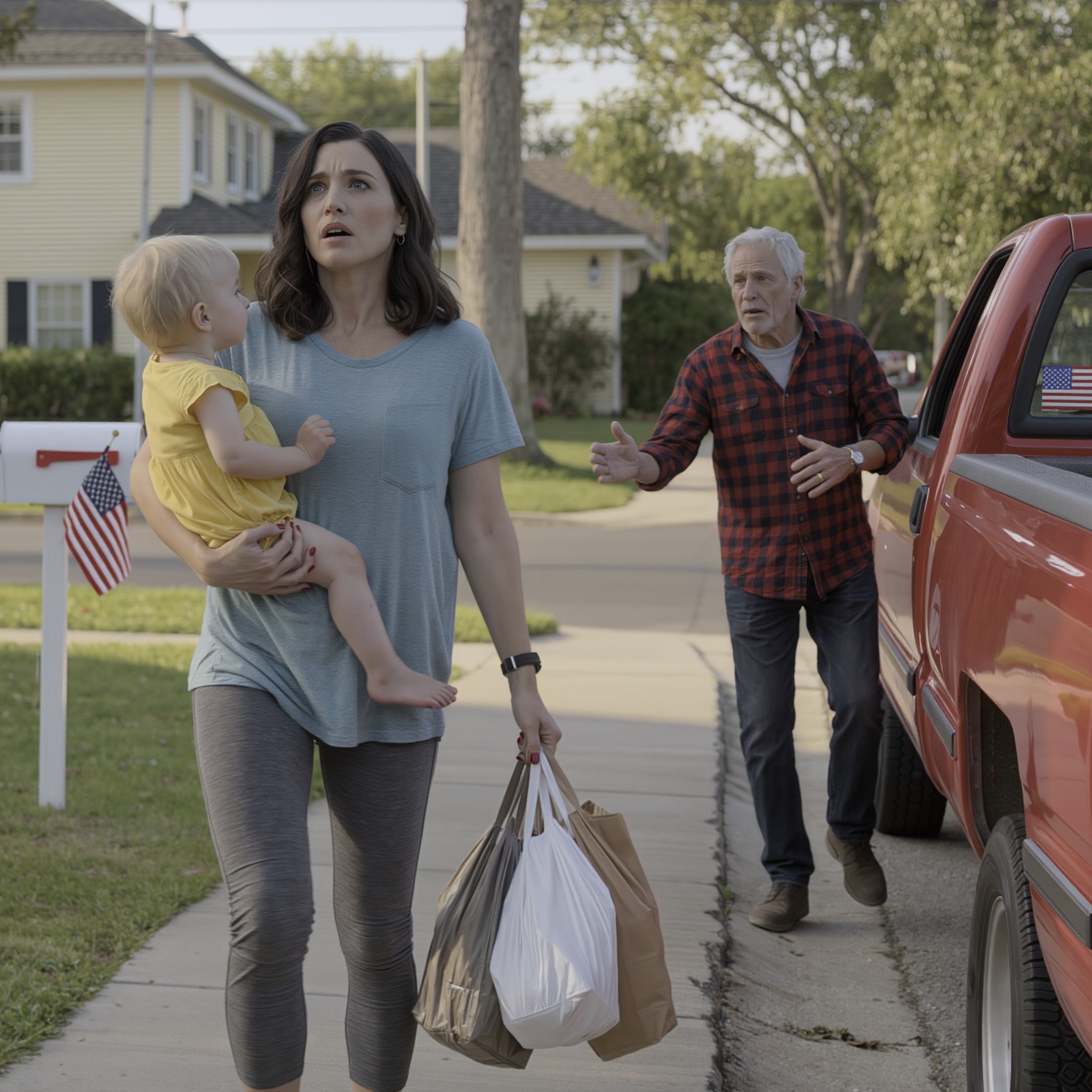 The afternoon sun beat down on the cracked sidewalk as I limped past Mrs. Chen’s house, past the corner where the stop sign leaned slightly to the left, past all the familiar landmarks of a neighborhood that had stopped feeling like home months ago. Eli’s little fingers tangled in my hair, tugging occasionally, his weight making my shoulder ache.