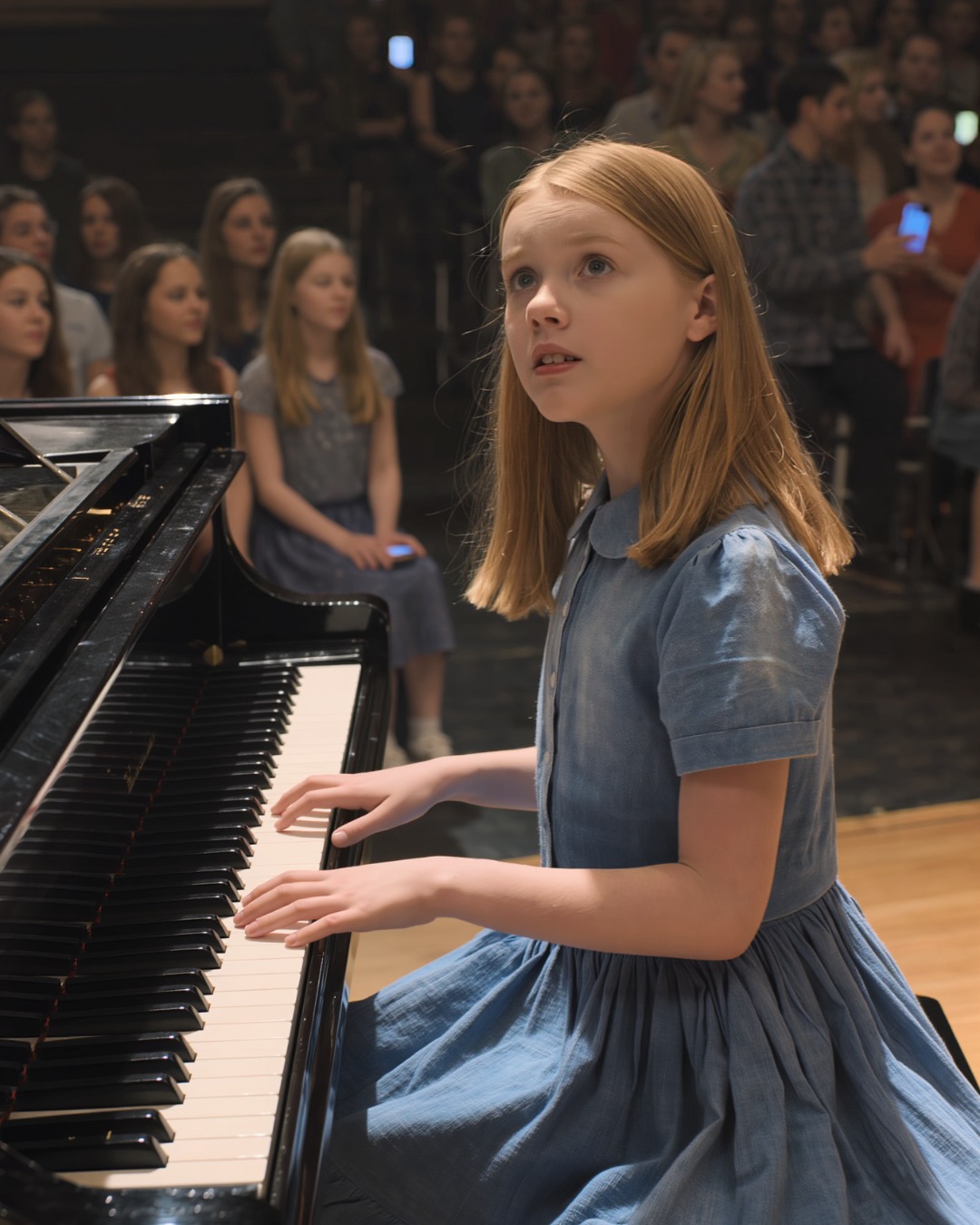 At first I thought it was in my head—that tight, ringing silence that comes when you’ve been bracing yourself for something and it never comes. My daughter’s hands were still hovering above the keys, fingers curled in that delicate way of hers, as if the piano might disappear if she pressed too hard. The last note of her song hung in the air like a breath that no one wanted to exhale.