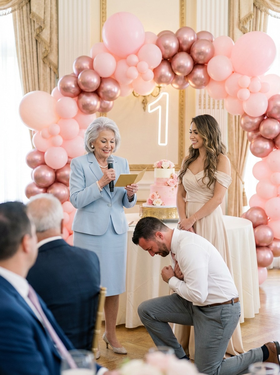 As the double doors opened and the music softened, conversations paused in a ripple that traveled across the room, because absence often makes a stronger statement than presence, and mine had been noted for years. At the far end of the ballroom, Pierce stood on a small stage beside Lila, who held a baby dressed in pale blue, smiling with the confidence of someone who believes the evening belongs entirely to her.