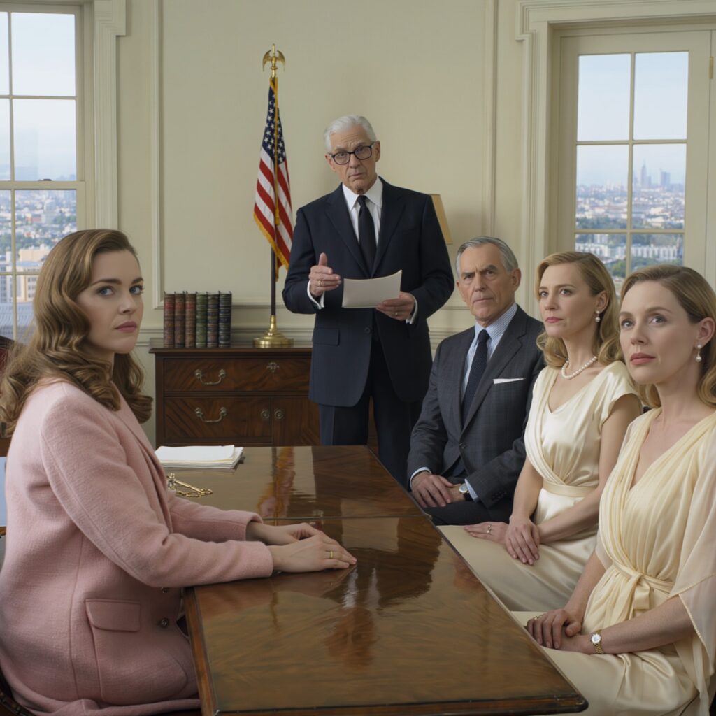 His silver hair was perfectly cut, his watch caught the light at his wrist, and the leather folder in front of him rested on the table with the lazy confidence of a man who had spent forty years sitting at the heads of rooms and being listened to.