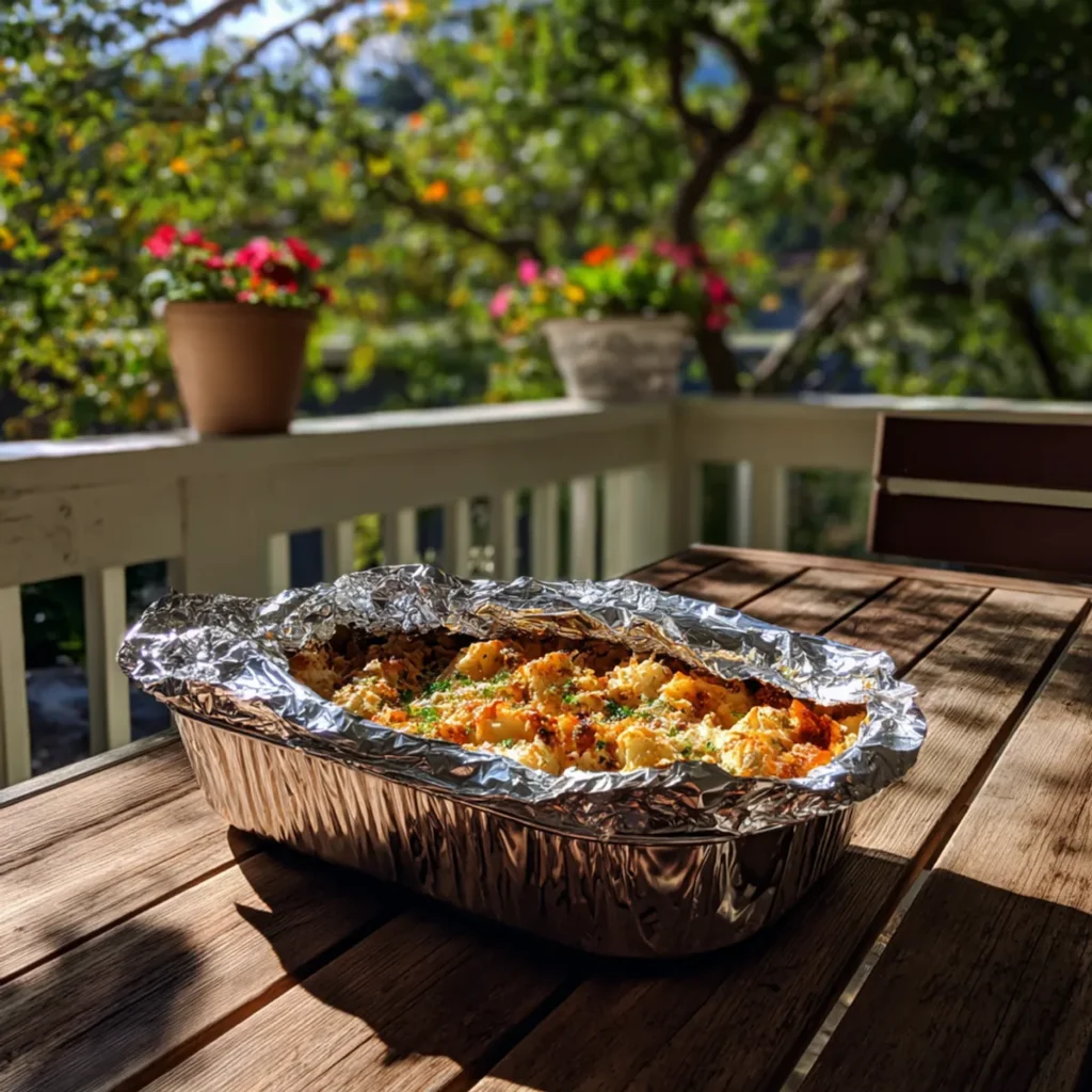 A container of food on a porch table