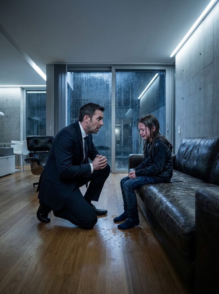 Her school uniform clung to her thin body, dark with water. A puddle spread beneath her feet onto the rug. Her hair stuck to her pale cheeks. Her lips were tinted blue. Her eyes were half-open, unfocused, as if staying awake required effort she no longer had.