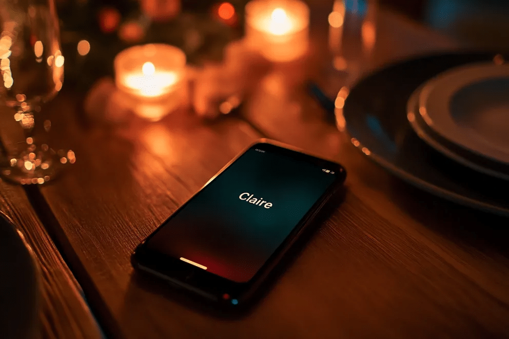 While we were eating, everything seemed fine, but then my phone buzzed on the table. The screen showed the name Claire.