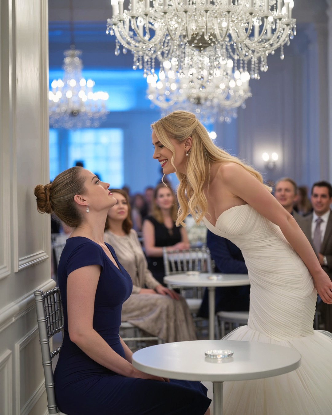 By the time my sister leaned toward me with her perfect lips curved into that little razor-blade smile, the ballroom felt less like a celebration