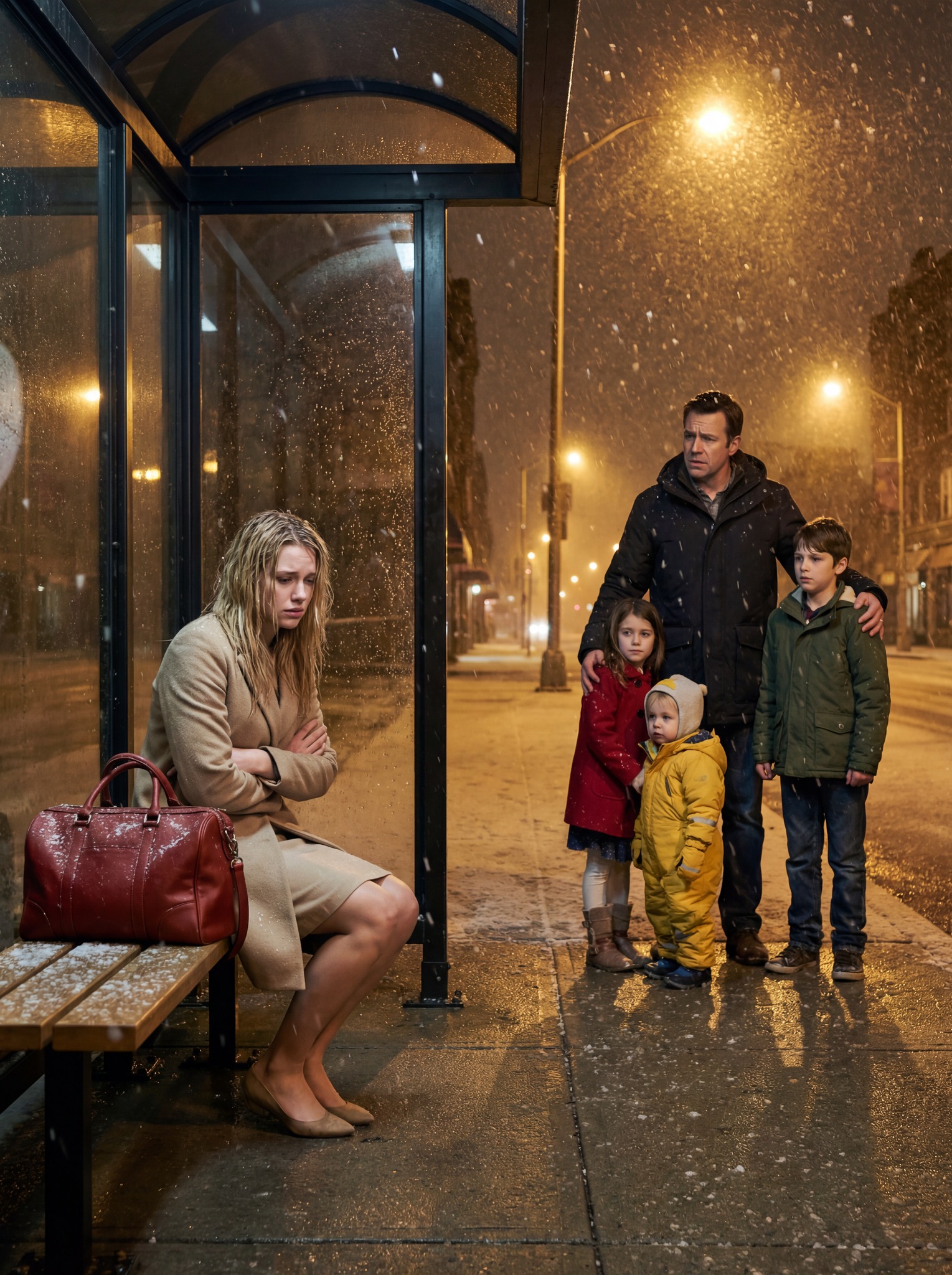 At her feet sat a scuffed brown leather bag, the only thing she had managed to gather when the front door shut behind her, and she kept glancing down at it as if she might find new answers inside the zipper. The bag held one spare outfit, a few wrinkled photos, and a set of divorce papers that still looked too crisp, as though the ink had not yet caught up with what it meant to her life. Three hours earlier, she had been in a house that had smelled like expensive candles and fresh paint, and now she was in a storm that turned her eyelashes wet and heavy, watching snow erase her footprints as quickly as she made them.