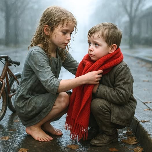 She took off her favorite purple scarf and put it around the boy’s neck without thinking or hesitating.