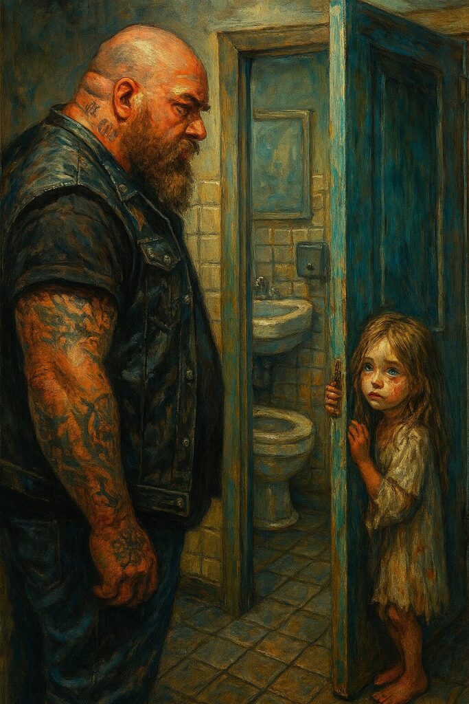 Big Mike, who weighed 280 pounds and was covered in tattoos, had just stopped for coffee after a long ride when he heard soft cries coming from the women’s lavatory.