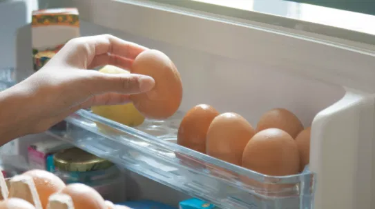 Make sure the eggs are fresh and fully cooked. If they aren’t cooked all the way through or stored properly, there is a chance of getting sick from food, such as salmonella. To decrease any risks, always keep eggs in the fridge and make sure they are fully cooked.
