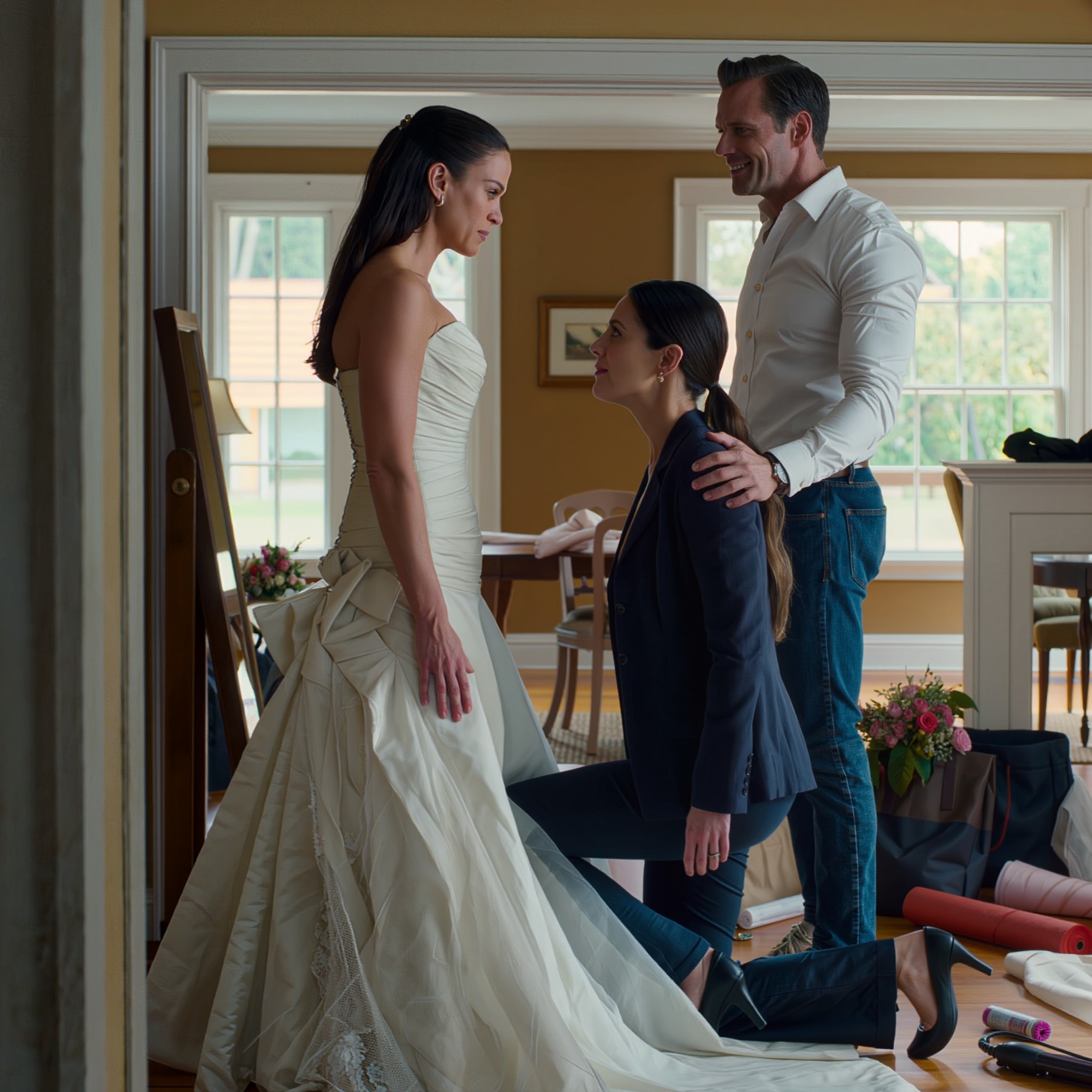 I moved closer, offering to help smooth the fabric where it wrinkled near her hip. It had once been natural for me to slip into the role of helper, fixer, little sister who made everything easier. I had spent my whole life doing that for her, long after most people stopped needing help from anyone. She let me tug gently on the skirt to adjust the hem. I knelt to straighten the layers, and as I did, she looked down at me with a smile so calm and cold it made the back of my neck prickle.