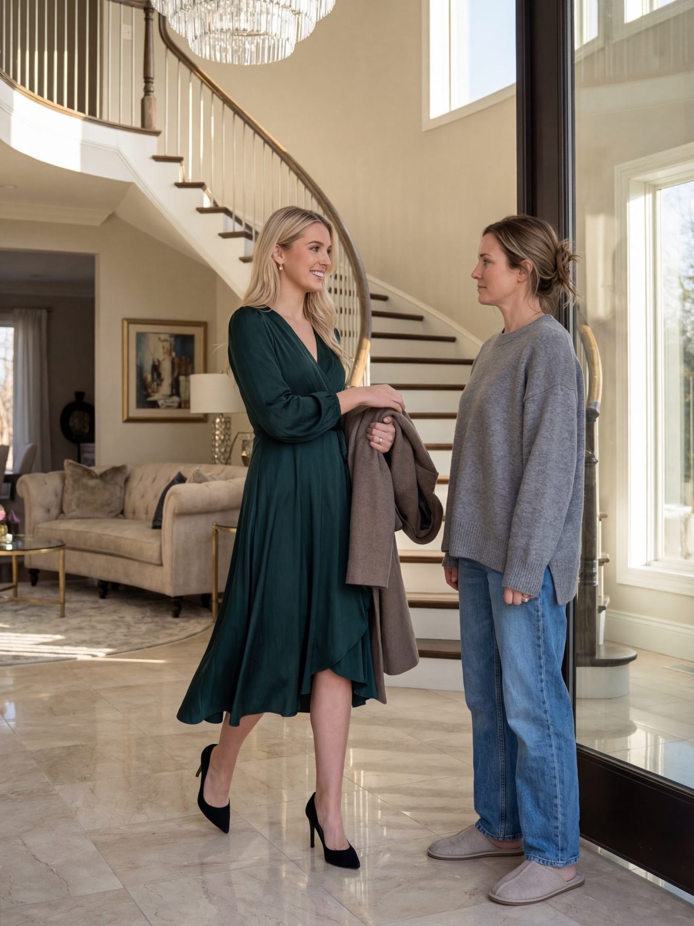 She pressed the doorbell with the impatient confidence of someone who already believed she belonged inside the house, and when I opened the door she barely glanced at my face before removing her designer coat and handing it to me as if I were part of the furniture.