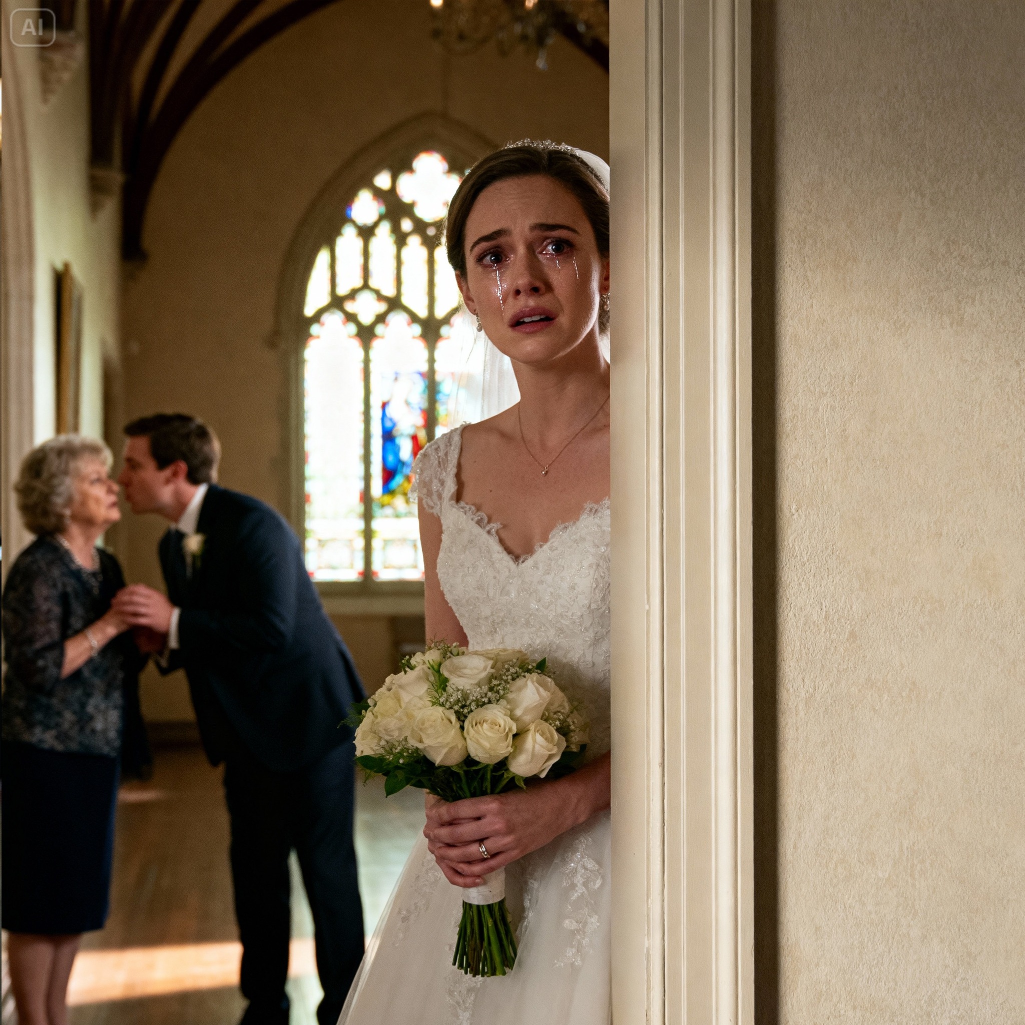 I stepped into the hallway to get some air when I heard voices coming from the groom’s lounge. The door was slightly open. I recognized Ryan’s voice immediately—low, impatient.