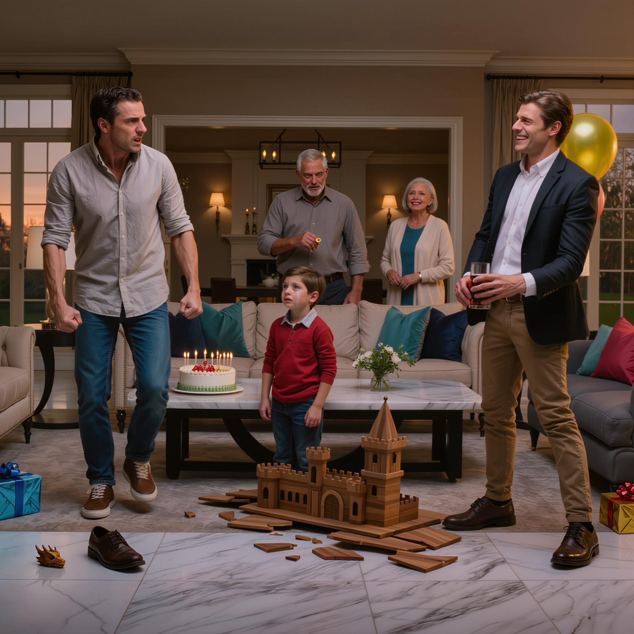 The breaking point came as it always did, disguised as a joke. After the cake and the singing, Leo had carefully placed his wooden castle on the low marble coffee table. He wanted everyone to see it. He was so proud. His friends were gathered around, pointing at the little details, their faces full of wonder.